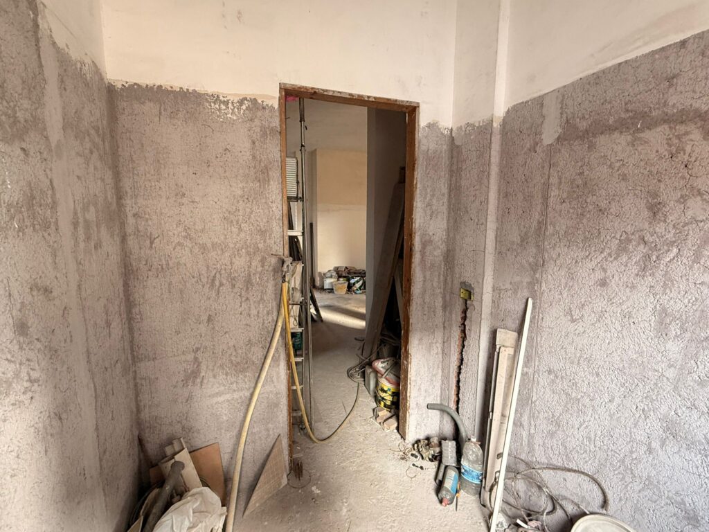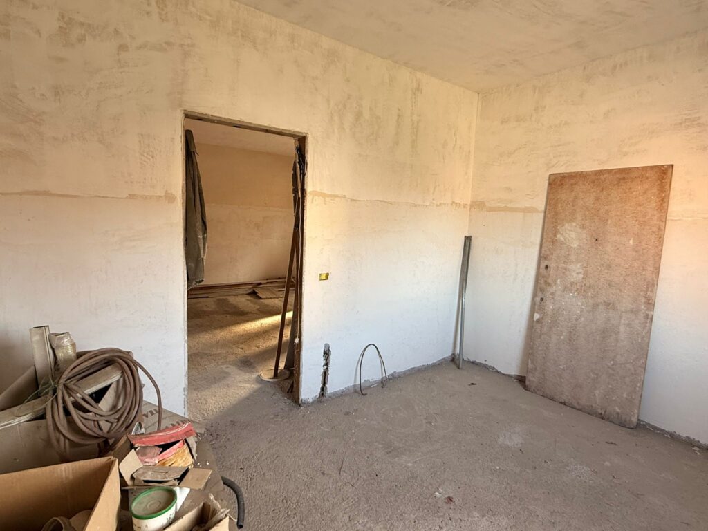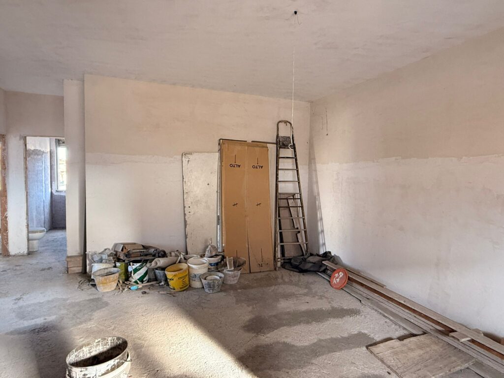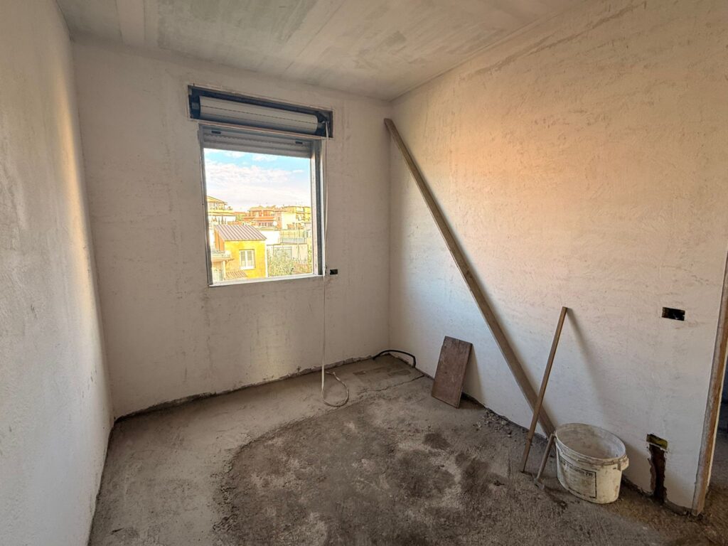 Villa Verde ed esattamente in via Alessano disponiamo di un appartamento allo stato grezzo composto attualmente da: ampio salone a vista con terrazzino a livello di 10 mq circa, cucina abitabile, disimpegno, due camere e doppi servizi. Il vantaggio di acquistare un appartamento in questo stato è la possibilità di rifinirlo a proprio piacimento, e volendo per chi ne avesse la necessità, potrebbe creare una terza camera. L’appartamento è esposto su tre lati, è un piano intermedio perchè trattasi di un primo piano di una struttura di soli due piani. La sua collocazione ha molteplici sfaccettature in quanto può essere utilizzato sia come una prima abitazione principale sia per un investimento sicuro in quanto locabile a STANZA per circa 400 euro mensili.